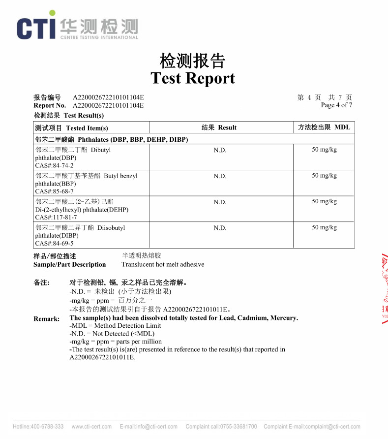 电子胶ROHS报告