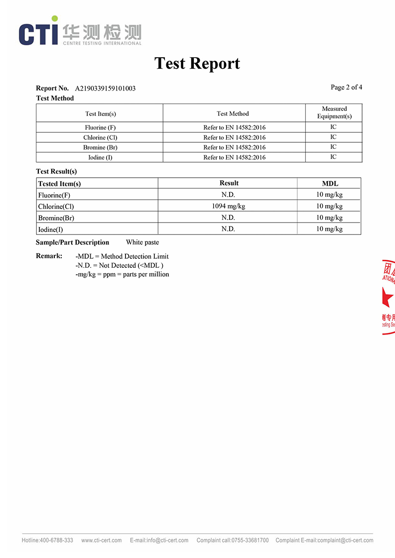硅胶卤素英文版检测报告