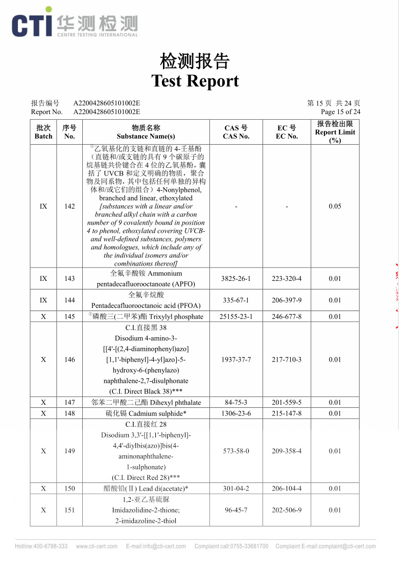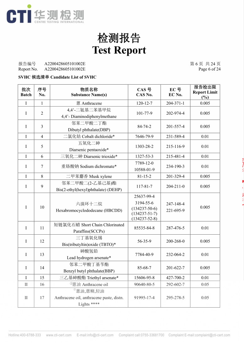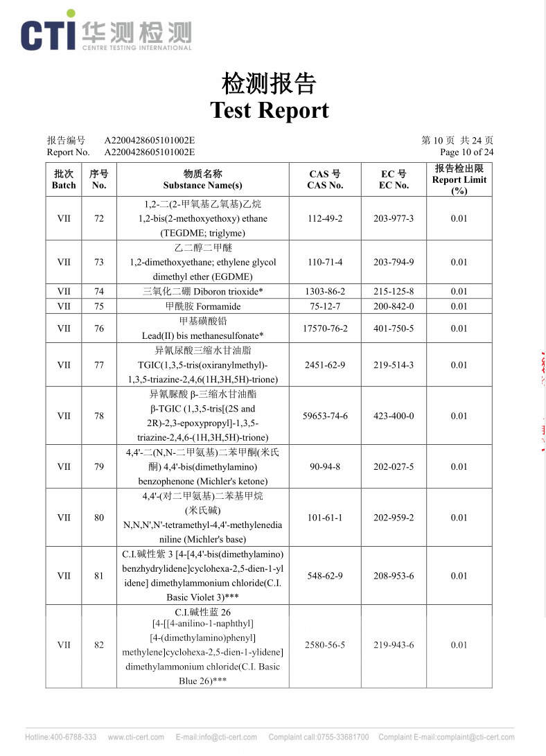 黄色REACH检测报告