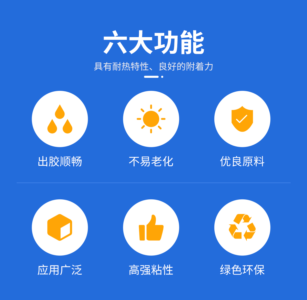 • 耐高低温 高温不溢胶,低温不失粘;高低温适应范围可达-40℃-150℃