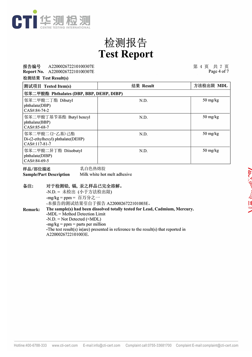 电子胶ROHS报告
