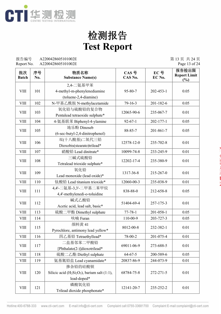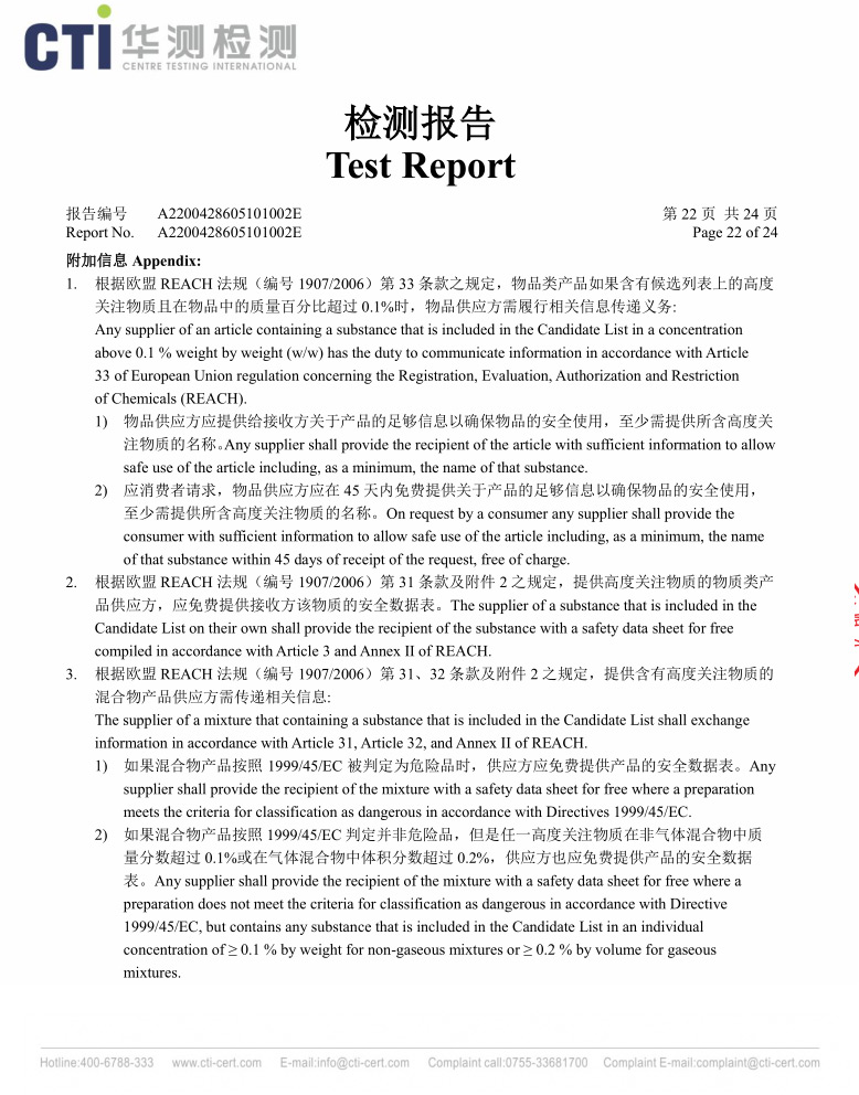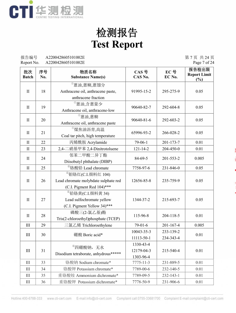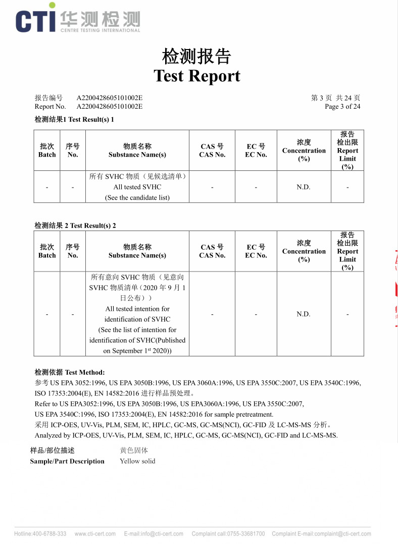 黄色REACH检测报告